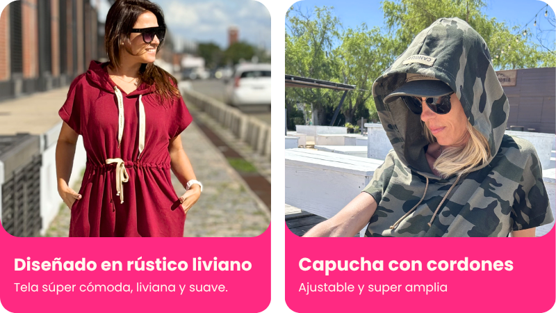 Es un diseño oversize que se adapta cómodamente a distintos cuerpos